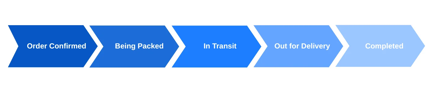 We display your order status in specific stages. Each stage will be highlighted based on the current progress: