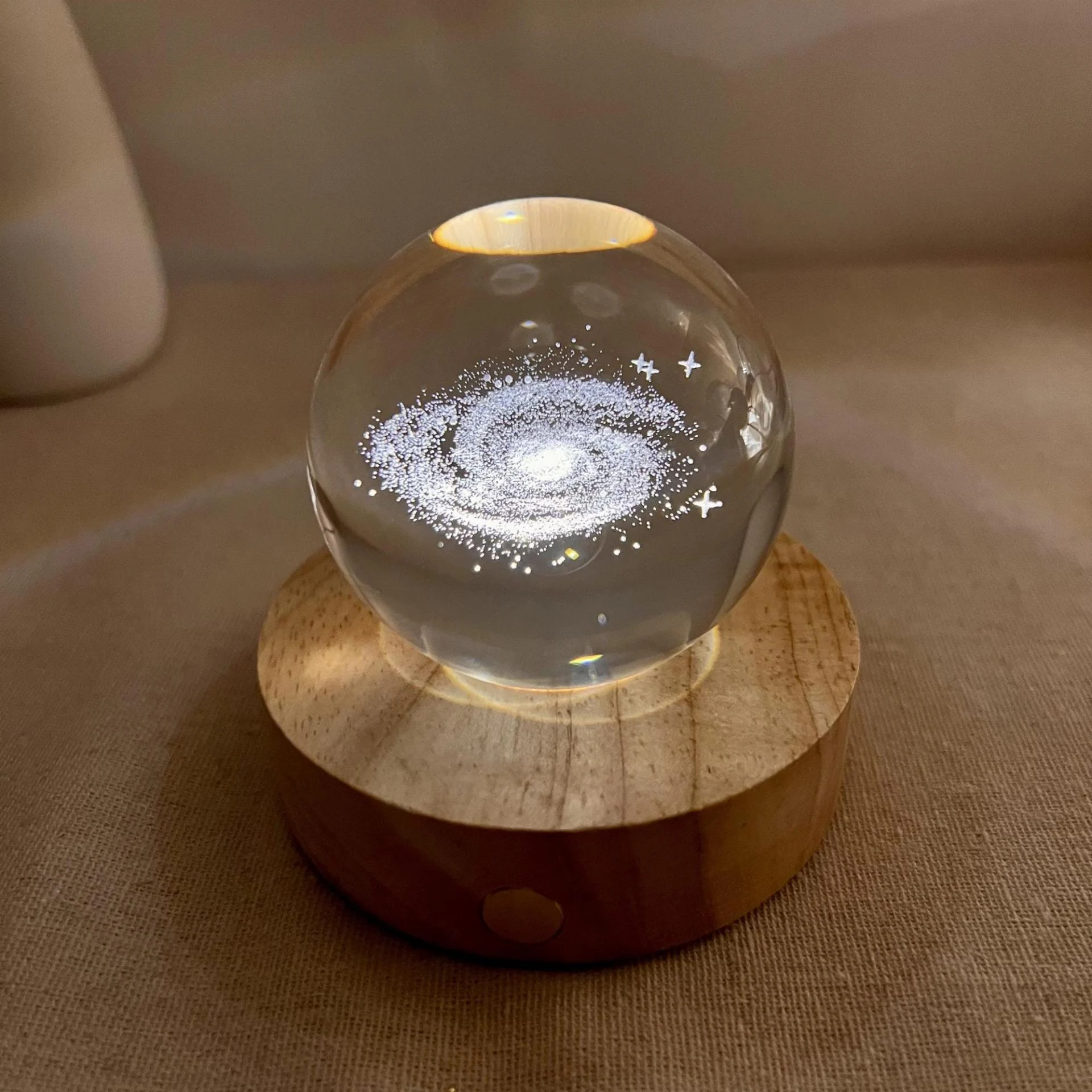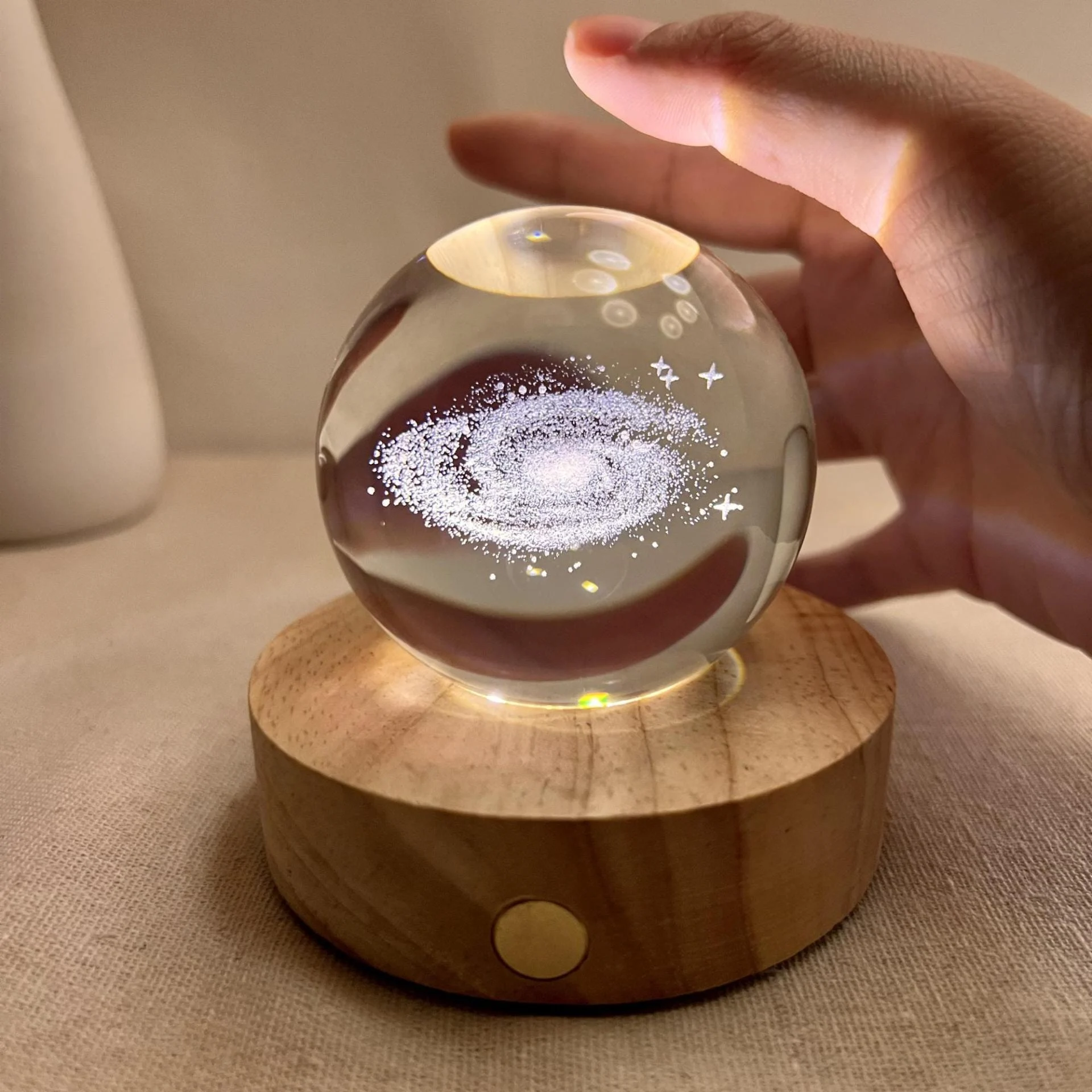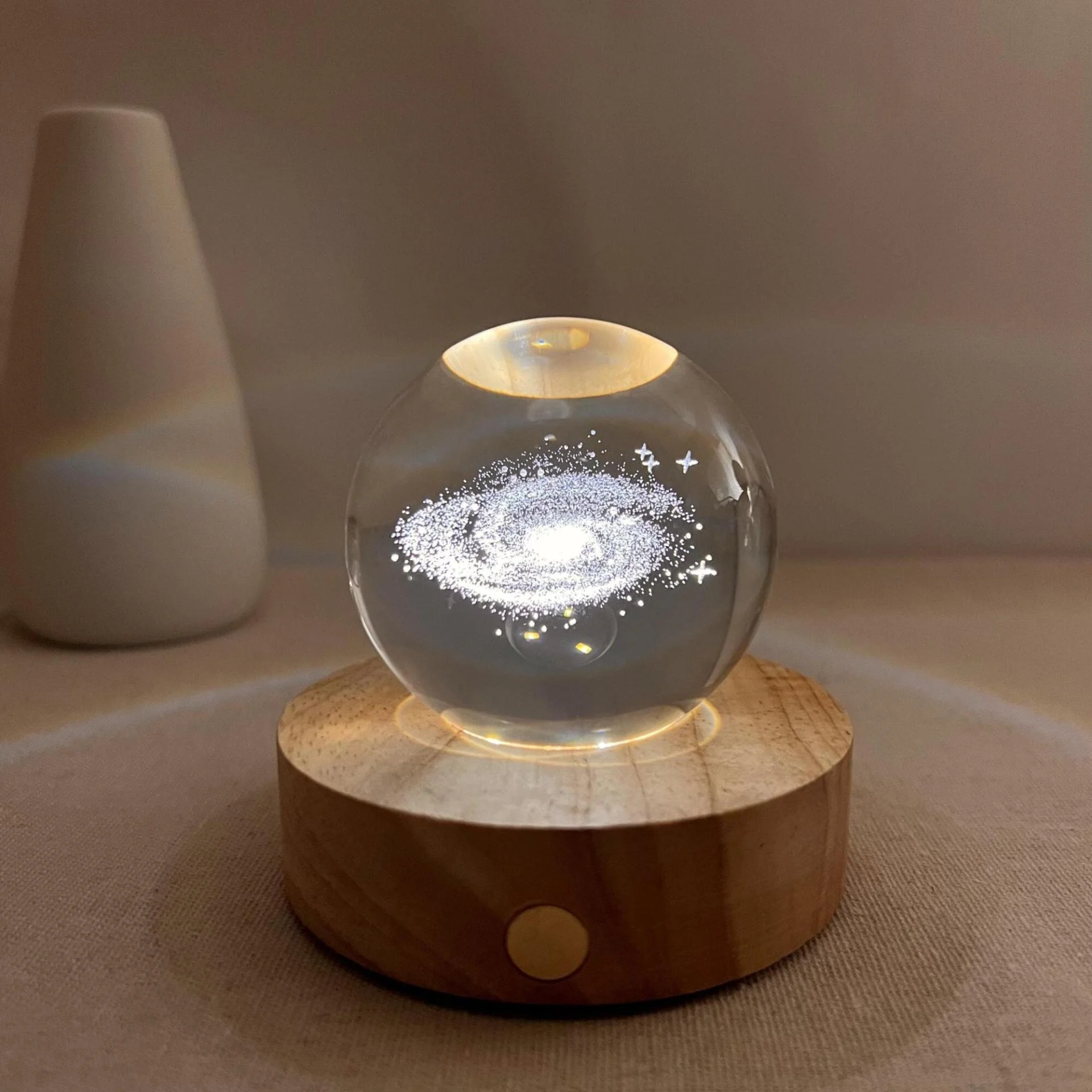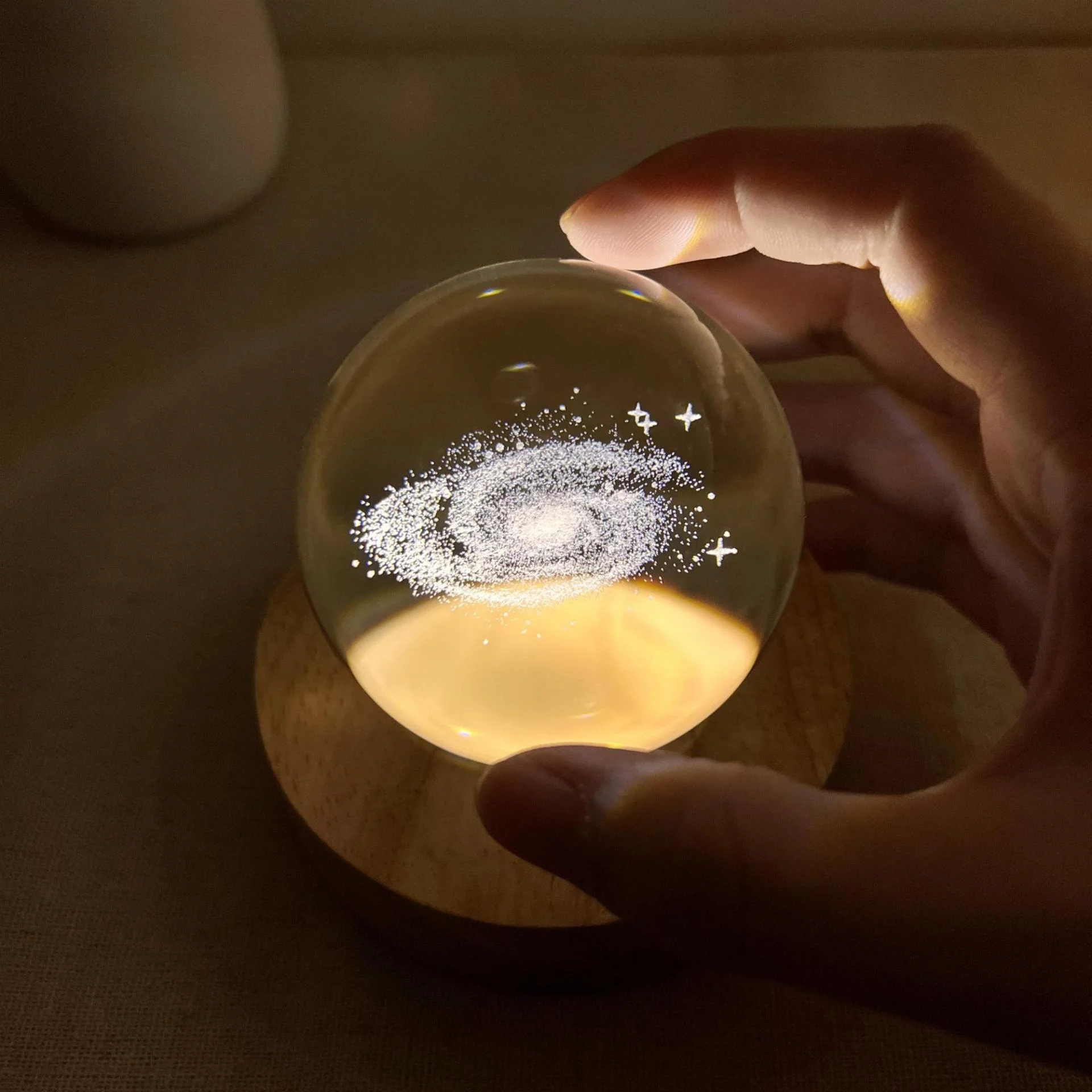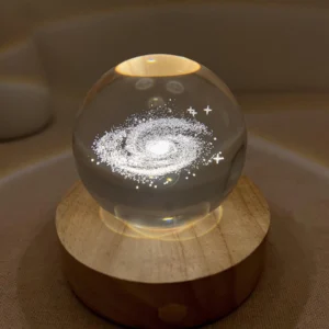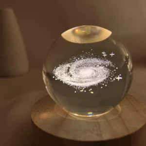 This unique night light brings a miniature universe into your space. With a transparent crystal sphere design and an intricately carved 3D Milky Way inside, this product is a stunning centerpiece for any room.