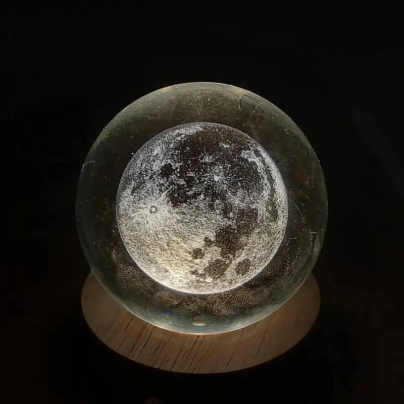 Realistic 3D Design: The Moon’s surface is finely laser-engraved inside the crystal globe, delivering a mesmerizing depth effect.