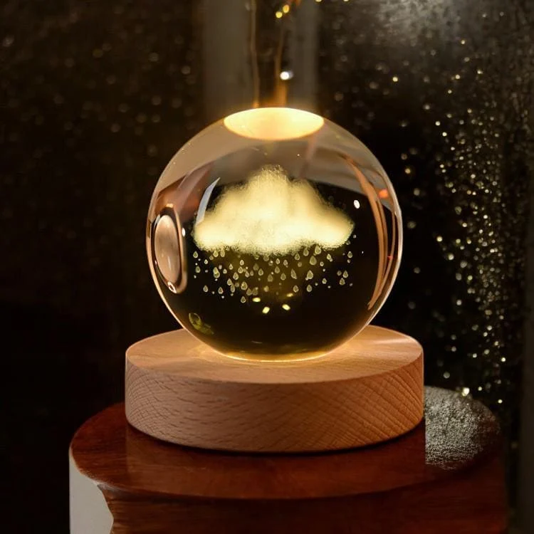 Simply place the crystal sphere on the wooden base, connect the USB power supply, switch it on, and let the dreamy scene of cloud and rain softly illuminate your space with warmth and charm.