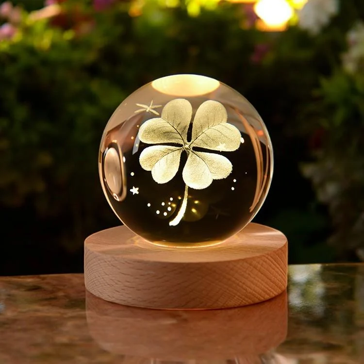 Unlike typical floral designs, this crystal night light is centered around the Four-Leaf Clover – a timeless symbol of Luck, Hope, Love, and Faith. The 3D Crystal Night Light "Four-Leaf Clover" combines intricate laser-engraved art within a sparkling crystal sphere, creating a warm glow and a deeply meaningful decorative piece.